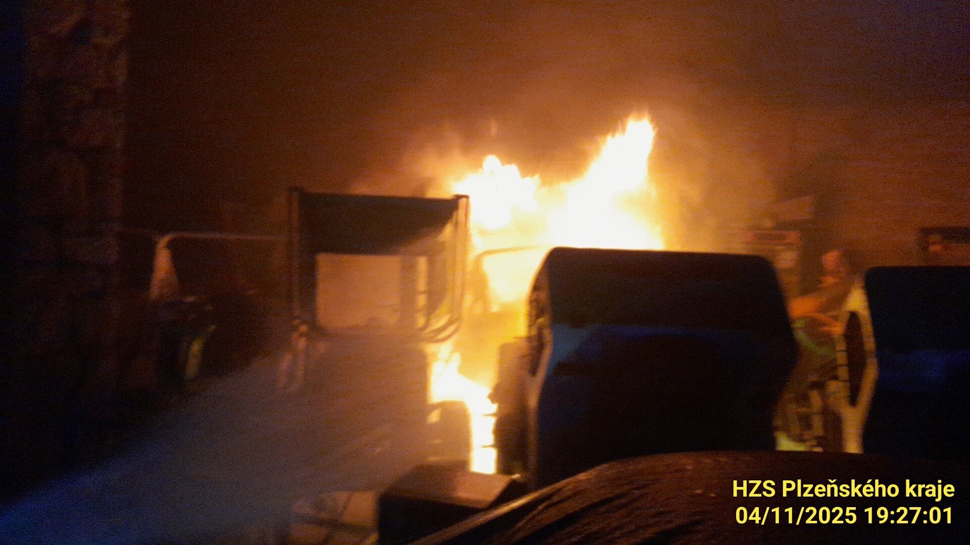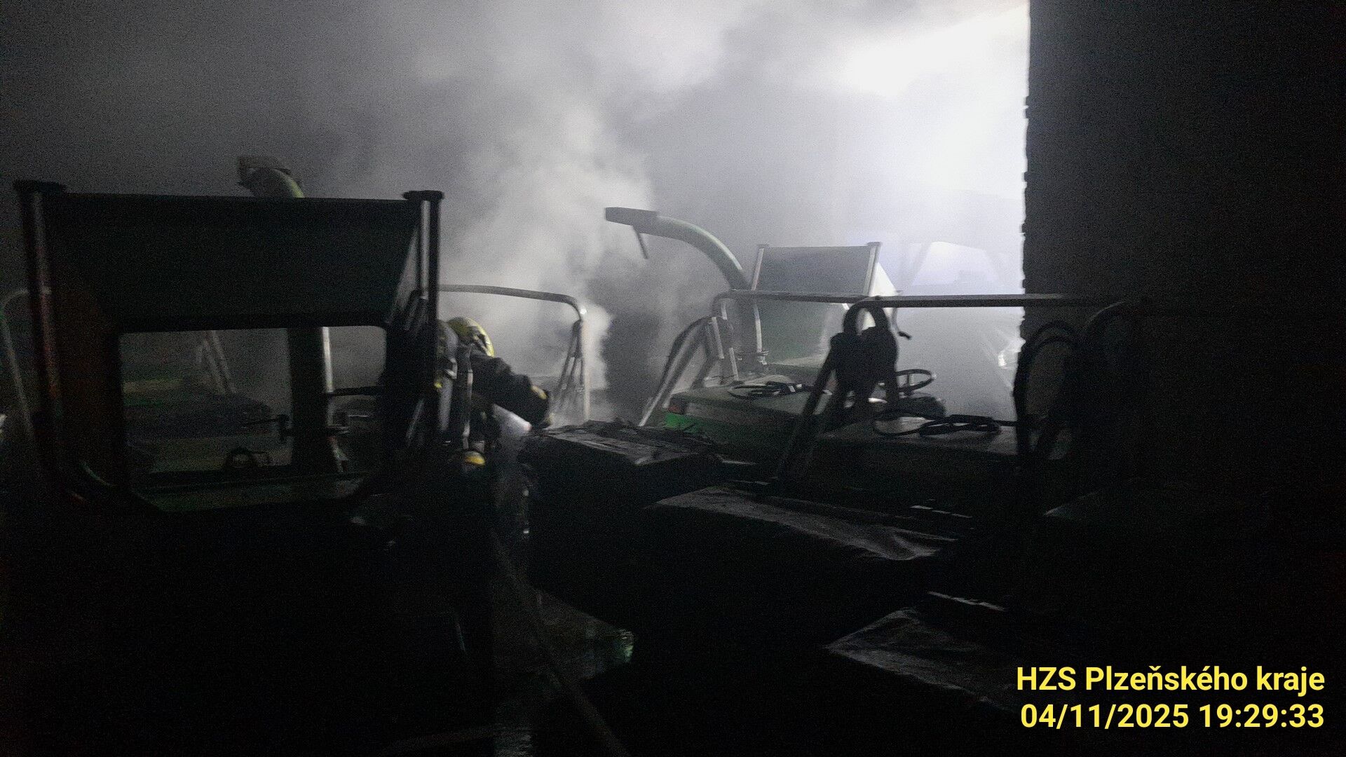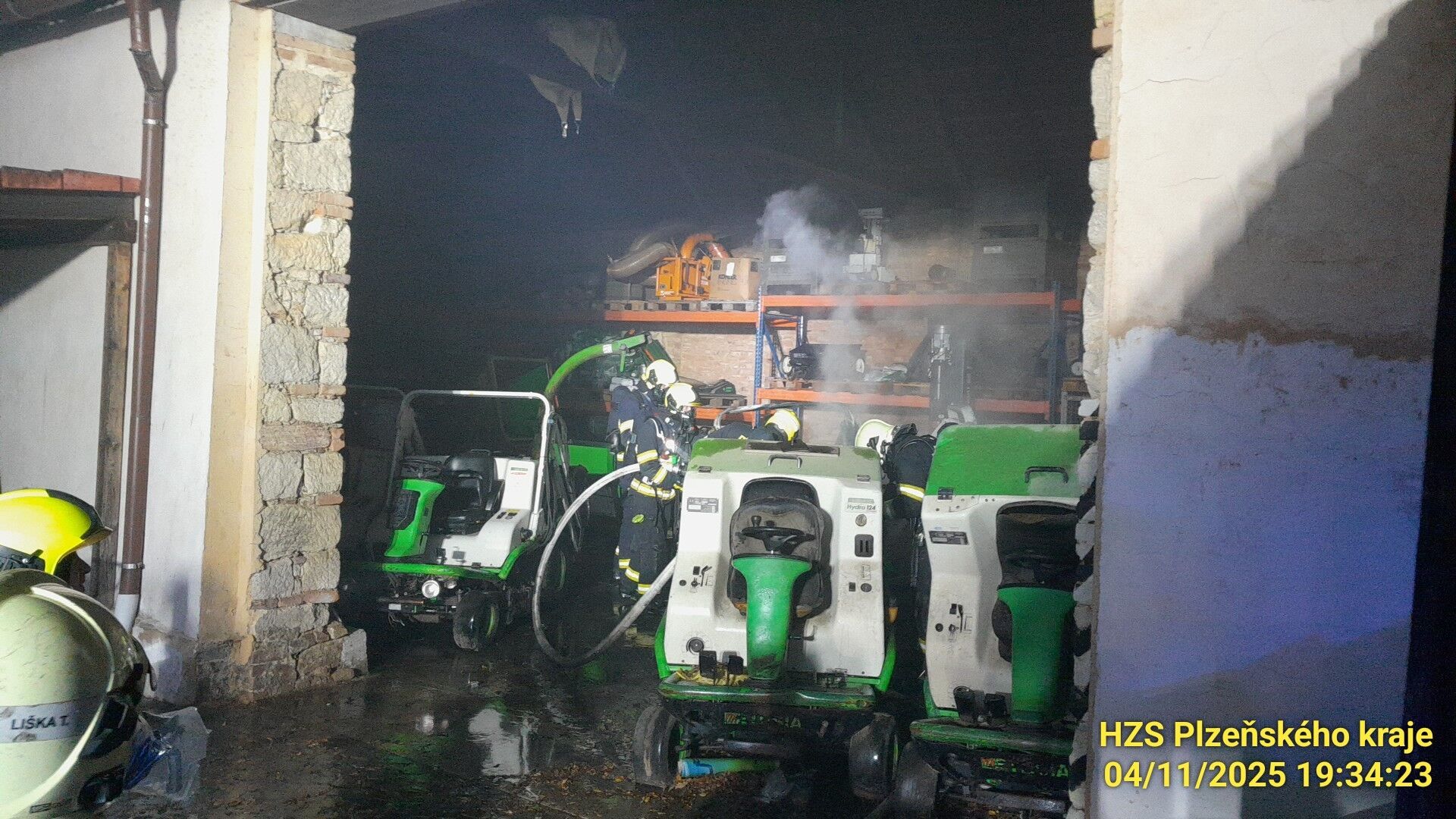 V úterý 4. listoapdu večer zasahovaly čtyři jednotky hasičů u požáru v objektu firmy v Chotíkově na Plzeňsku. Hořelo uvnitř objektu, kde byla uskladněna zahradní technika.