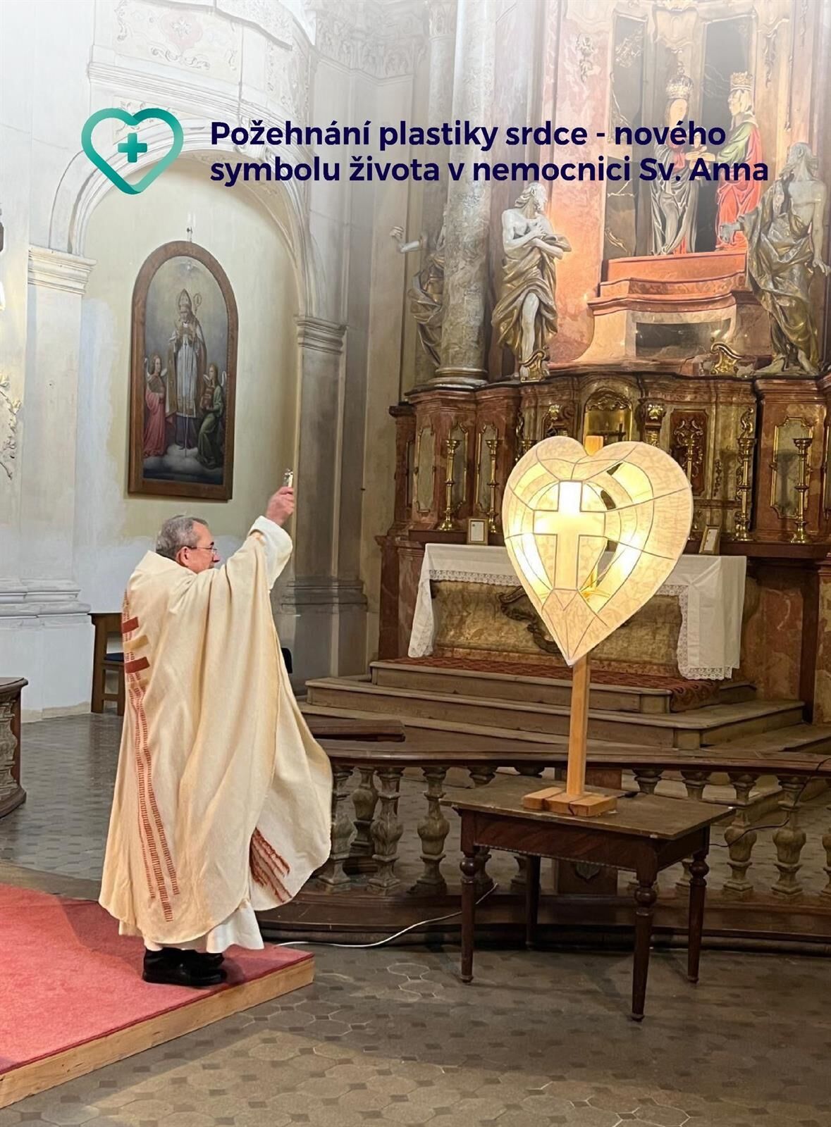 V nemocnici v Plané se rozzářilo srdce. Novému symbolu požehnal kaplan