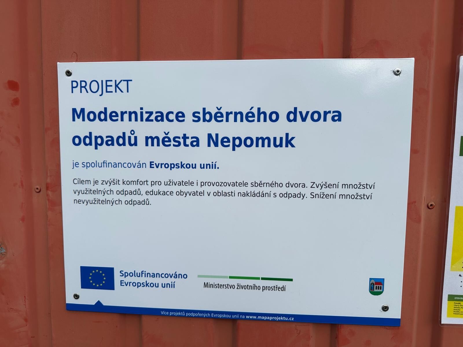 „Cílem projektu bylo rozšíření a zlepšení funkčnosti stávajícího sběrného dvora, aby lépe vyhovoval potřebám obyvatel města a umožnil bezpečnější a efektivnější manipulaci s odpady,“ uvedlo město Nepomuk.