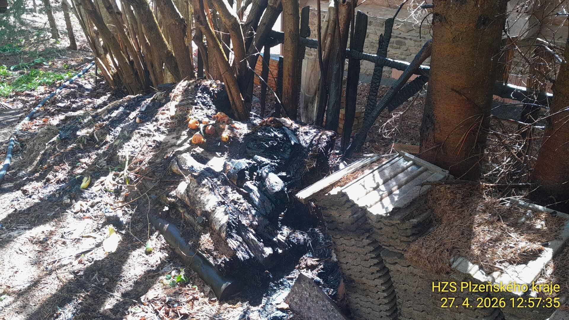 K požáru došlo v pondělí 27. dubna ve 12:20 v obci Opolenec, což je malá vesnice, část města Kašperské Hory v okrese Klatovy. “Oheň původně zachvátil kompost, odkud se částečně rozšířil na přilehlý plot a několik stromů v okolí,” uvedl Petr Poncar, mluvčí hasičů.