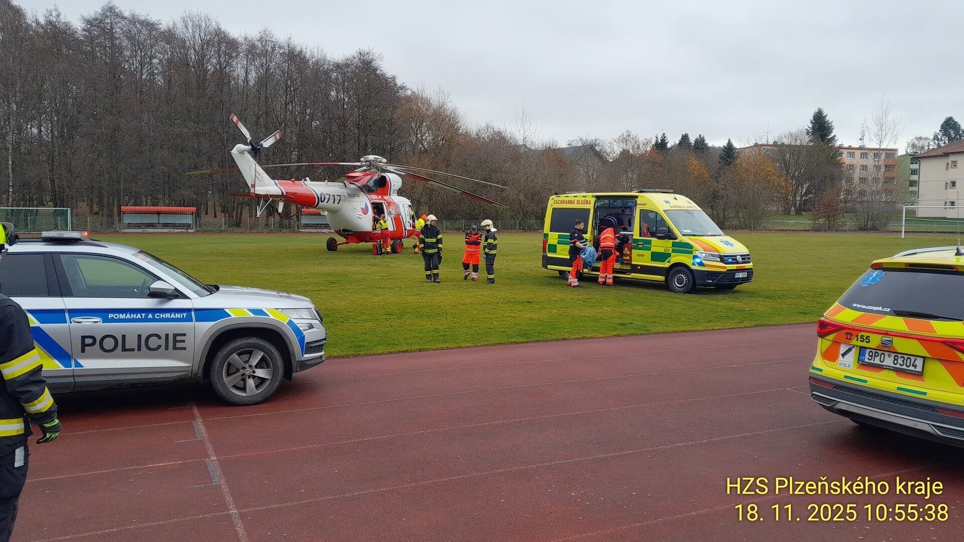 Na místě zasahují všechny složky integrovaného záchranného systému. „Došlo ke střetu nákladního automobilu s osobou. Povolán byl také vrtulník LZS. SDH Planá zajišťuje přistávací plochu,“ informoval Michal Holeček, mluvčí hasičů.