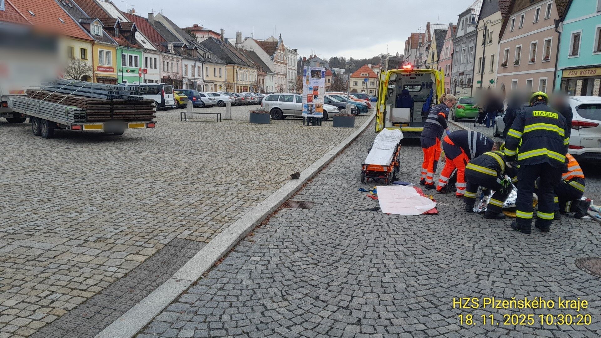 Na náměstí Svobody v Plané se v úterý 18. listopadu krátce po 10. hodině stala dopravní nehoda, při níž došlo ke střetu nákladního vozidla se starším mužem.