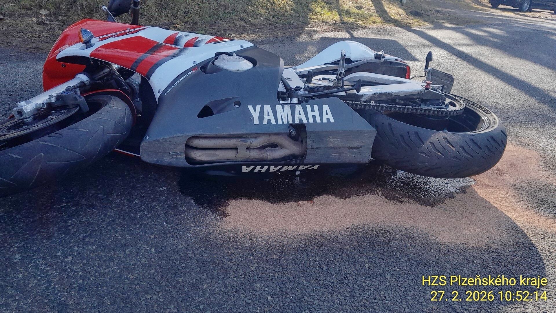 Při dopravní nehodě utrpěl zranění řidič motocyklu, který byl převezen do nemocnice k ošetření. „Muž narozený v roce 1994 utrpěl lehké zranění v oblasti dolní končetiny," upřesnil mluvčí záchranné služby Martin Štěpán.