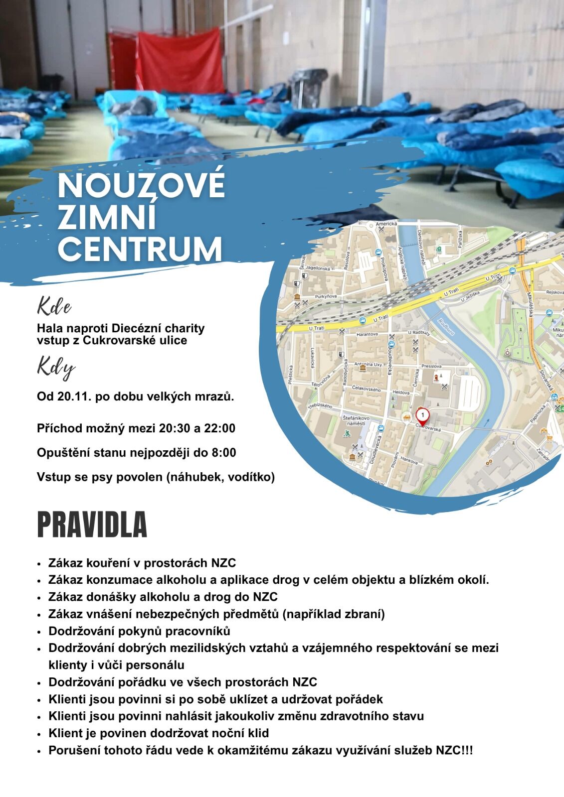 Nouzové centrum bude opět v areálu DEPO2015 – v budově bývalé myčky na Cukrovarské ulici. "Provoz bude otevřen v nočních hodinách, od cca 20:30 do 08:00, a to i pro osoby s doprovodem psa. Kapacita centra je až 75 osob," upřesnila koordinátorka