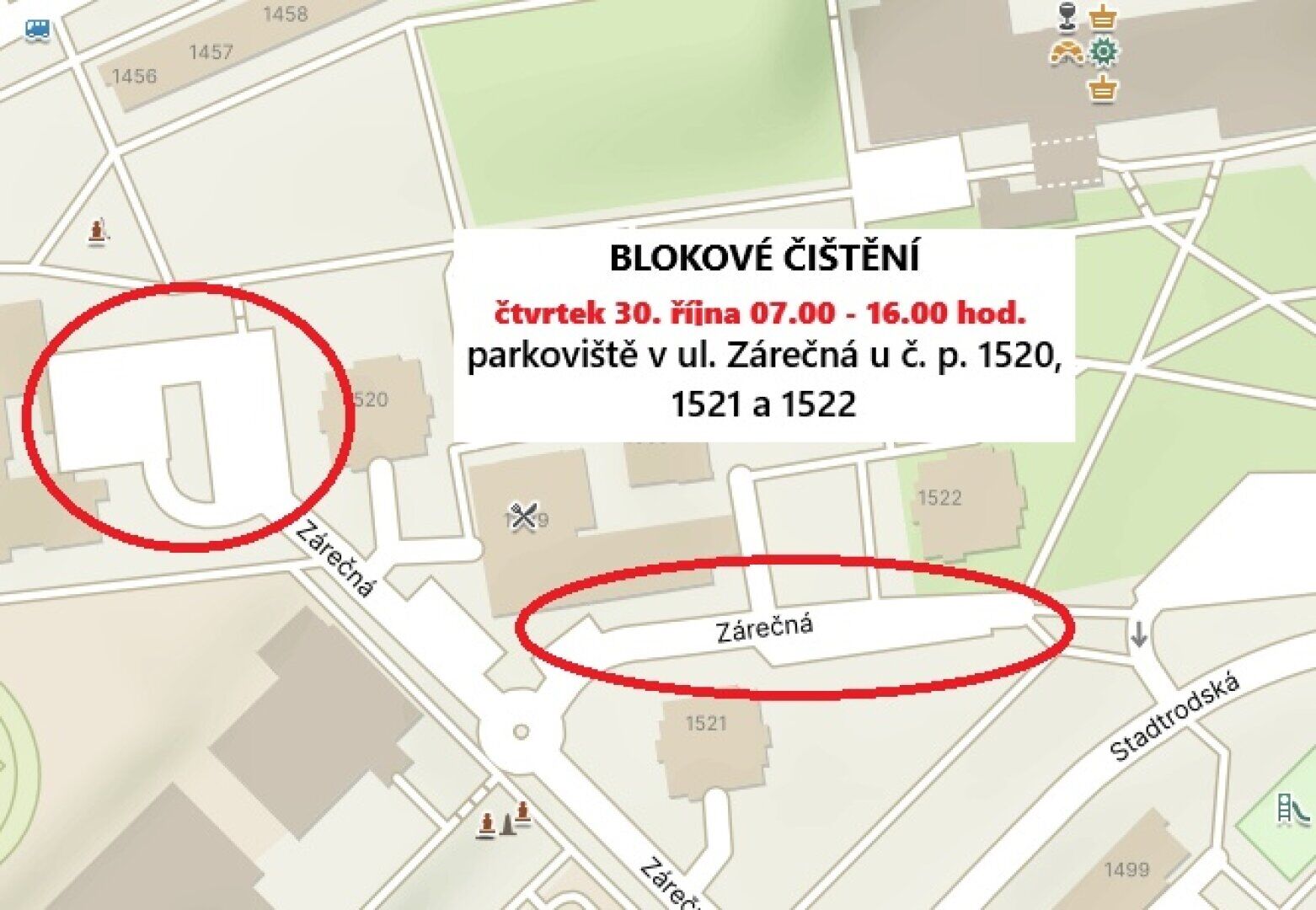 - Parkoviště v ulici Zárečná u č. p. 1520, 1521 a 1522