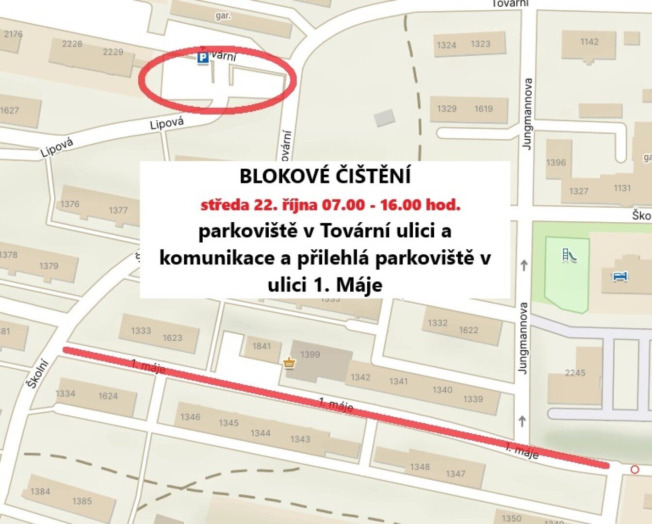 „Žádáme všechny občany, kteří na daných místech parkují o přeparkování vozidel a umožnění pravidelné údržby. Děkujeme za spolupráci!,“ uvedlo město Tachov.