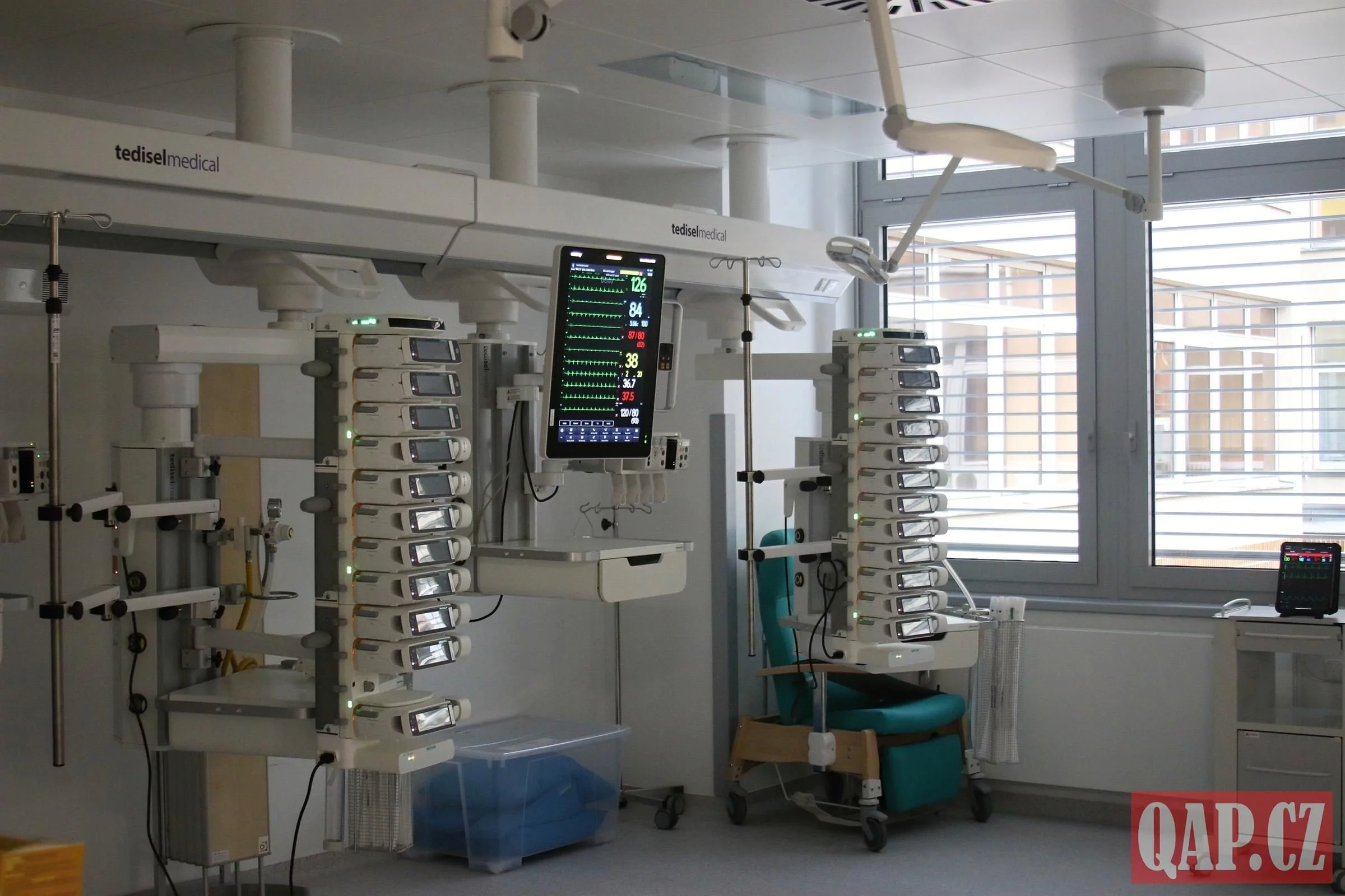 „Jednotka je kompletně od podlahy zrekonstruovaná. Nezbylo z té původní vlastně vůbec nic,“ prozradil redaktorce QAPu přednosta kliniky Martin Matějovič. „Změnilo se kompletně veškeré uspořádání, rozšířila se kapacita na 10 lůžek, navíc mají všechna schopnost absolutní izolace. Což zvětšuje bezpečnost a poskytuje hlukový, světelný i tepelný komfort pro každého pacienta. Obnovilo se vybavení, nové jsou závěsné systémy, dávkovače, monitory, vlastně téměř vše.“