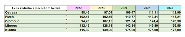 Plzeň si i po úpravě udrží jednu z nejnižších cen mezi srovnatelnými městy v České republice. Cena za vodné a stočné zůstává o více než 38 % nižší než je sociálně únosná cena stanovená Státním fondem životního prostředí pro Plzeňský kraj v roce 2026. V jiných městech jsou ceny výrazně vyšší – v Olomouci má v příštím roce platit částka 126,38 Kč/m³, v Liberci 156,59 Kč/m³ a v Kladně až 175 Kč/m³.