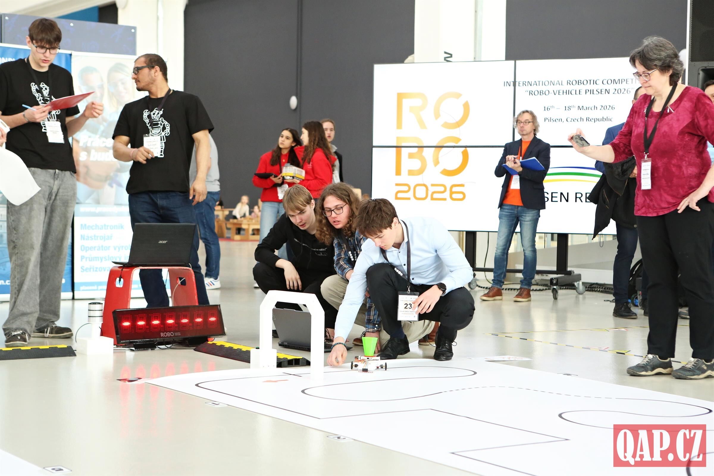 Do Plzně přijely na soutěž ROBO2026 týmy středních škol ze západu Čech, sousedního Německa, Ukrajiny, Turecka a Chorvatska. Letos se nově zúčastnili Portugalci a do západočeské metropole dorazili i Číňané. Hlavní program soutěže, tedy rychlostní jízdy robotických vozítek, proběhl v plzeňské Techmanii ve středu 18. března. Atmosféra byla úžasná, soutěžní jízdy napínavé a velkou roli hrálo i štěstí. QAP byl u toho.