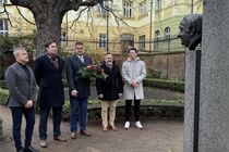 V Horníčkově zahradě v Plzni uctilo vedení třetího městského obvodu výročí narození plzeňského rodáka a významného umělce Miroslava Horníčka.
